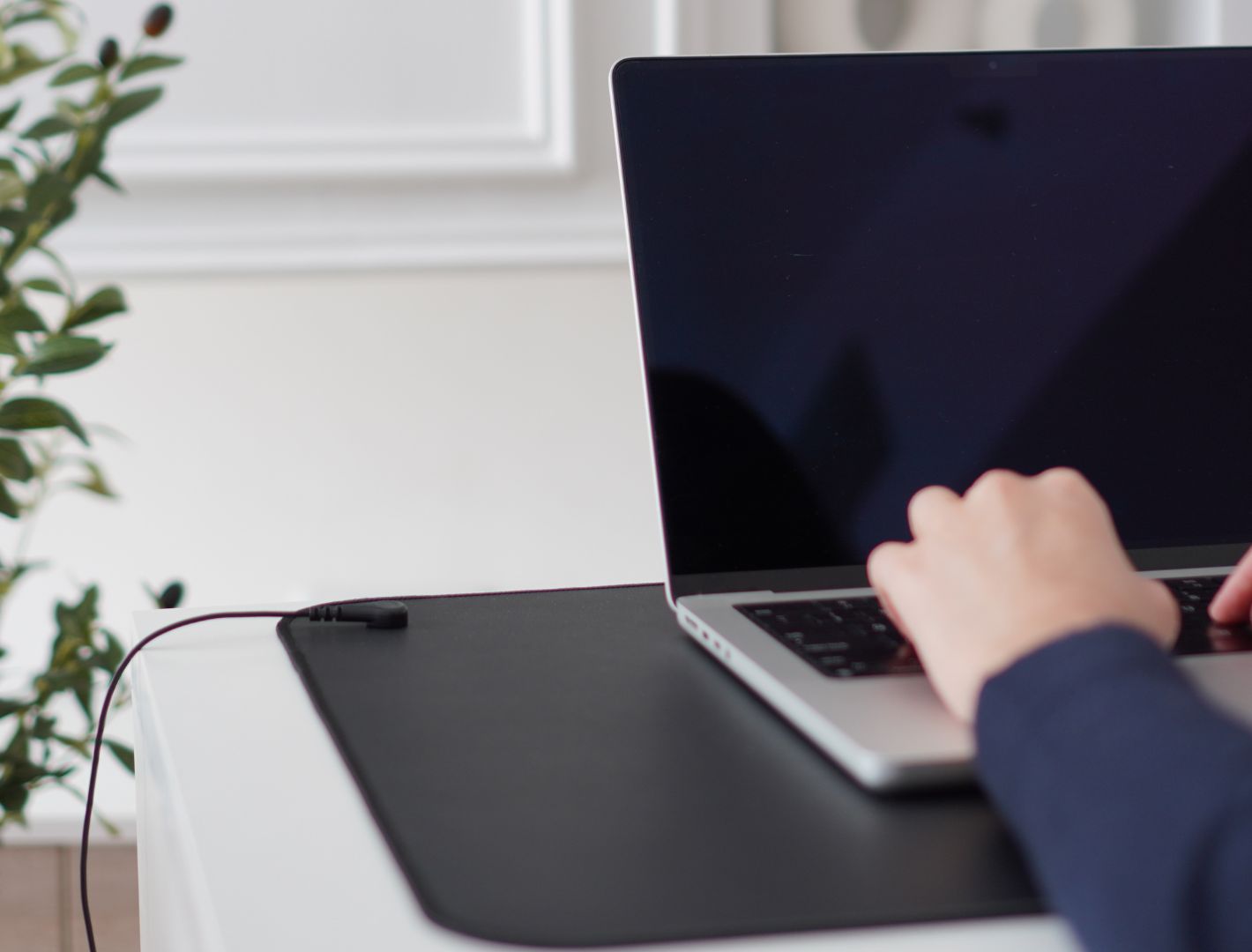 One of our favorite ways to use it is by placing the mat under a laptop and resting our arms on it while working. It's a simple way to stay grounded during busy hours at your desk. Whether you use it under your feet, on a chair, or across your workspace (or even in your bed while you sleep) the mat is designed to support you wherever and however you need it.